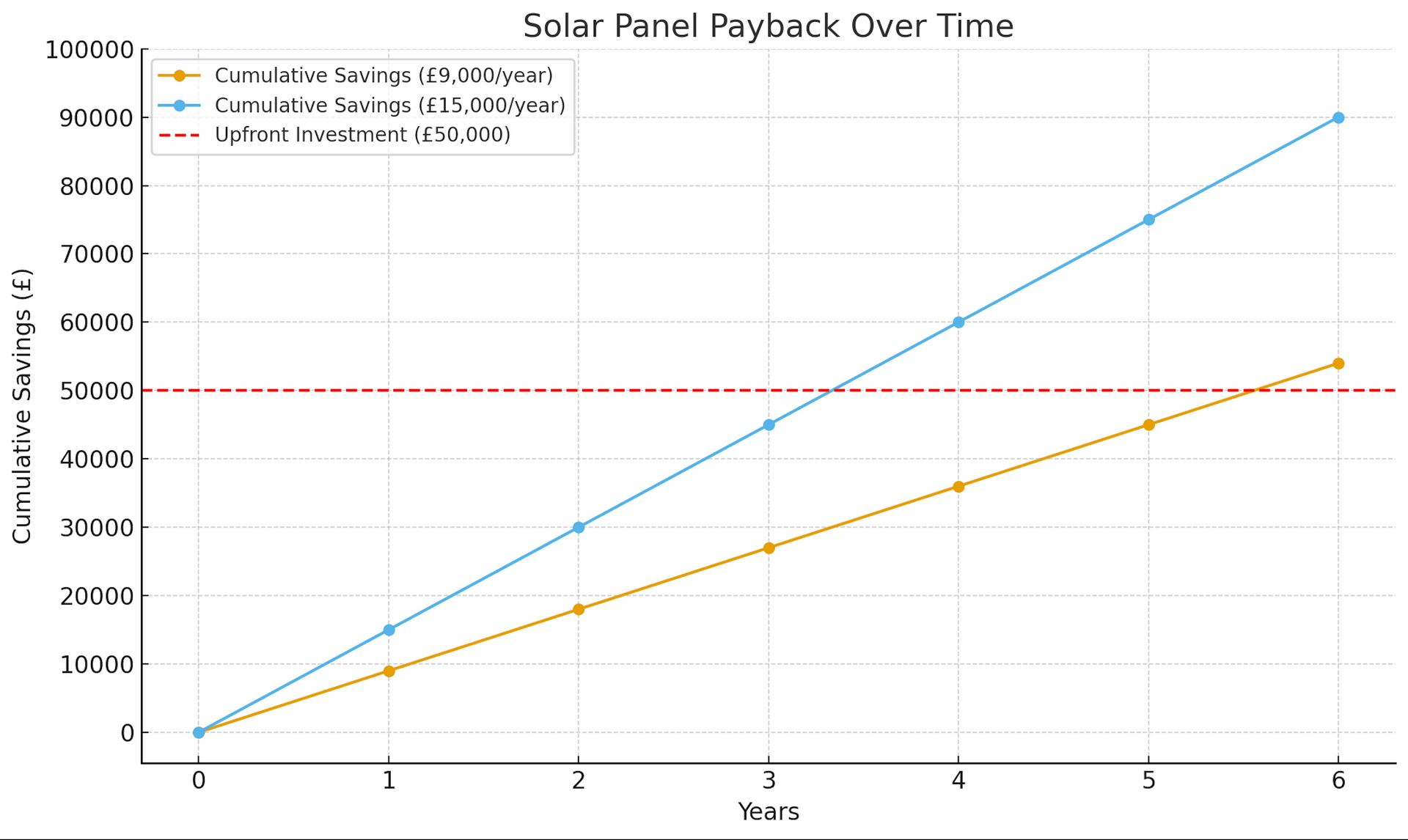 - If you save £15,000 per year, you could reach payback in just 3.5 years.